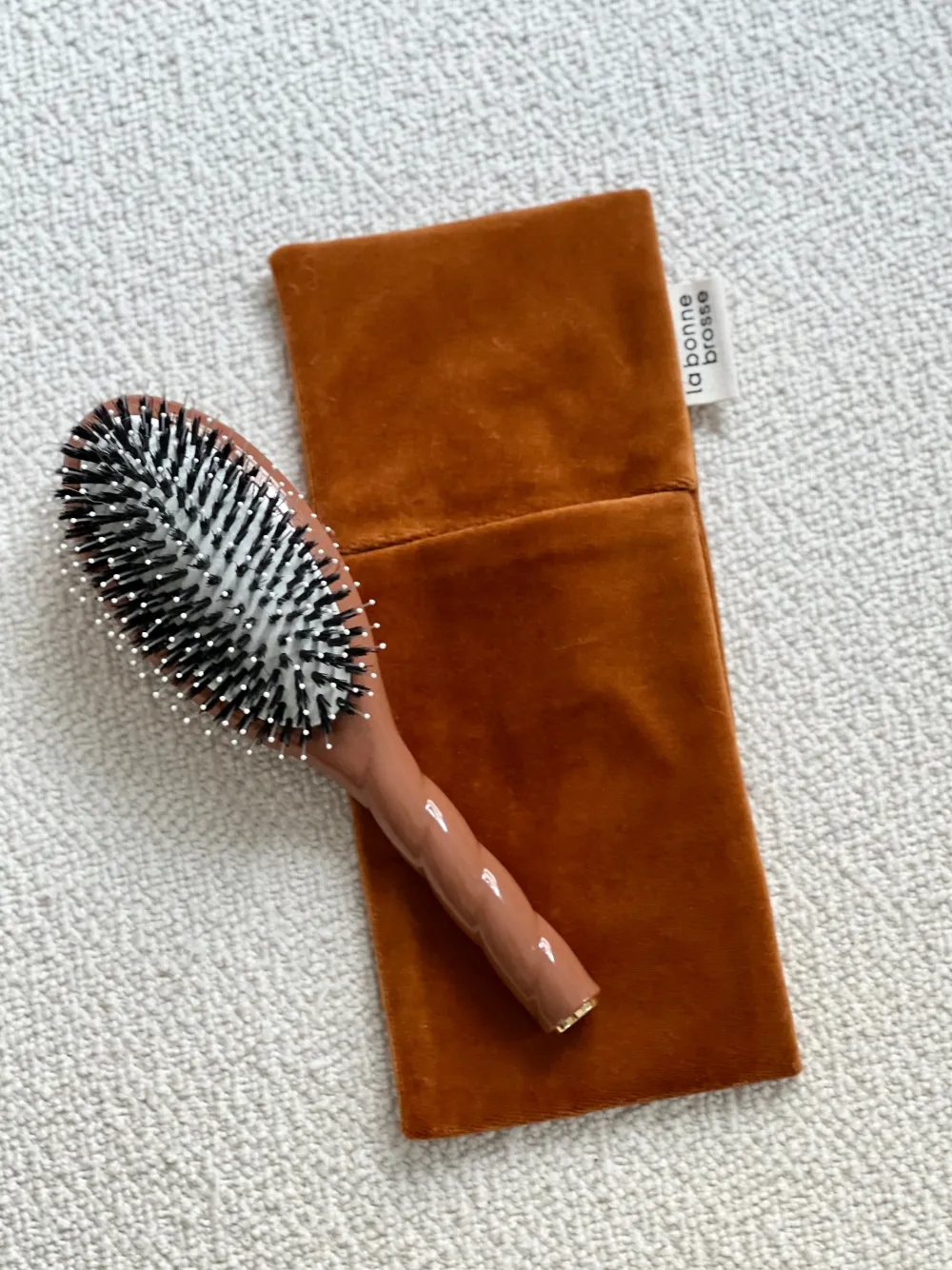 Cette pochette de protection a été imaginée pour accompagner votre brosse à cheveux dans sa longue vie. En velours et satin responsables, elle préserve votre Bonne Brosse, vous permet de l’emmener partout avec vous, tout en lui conférant le top de la protection.