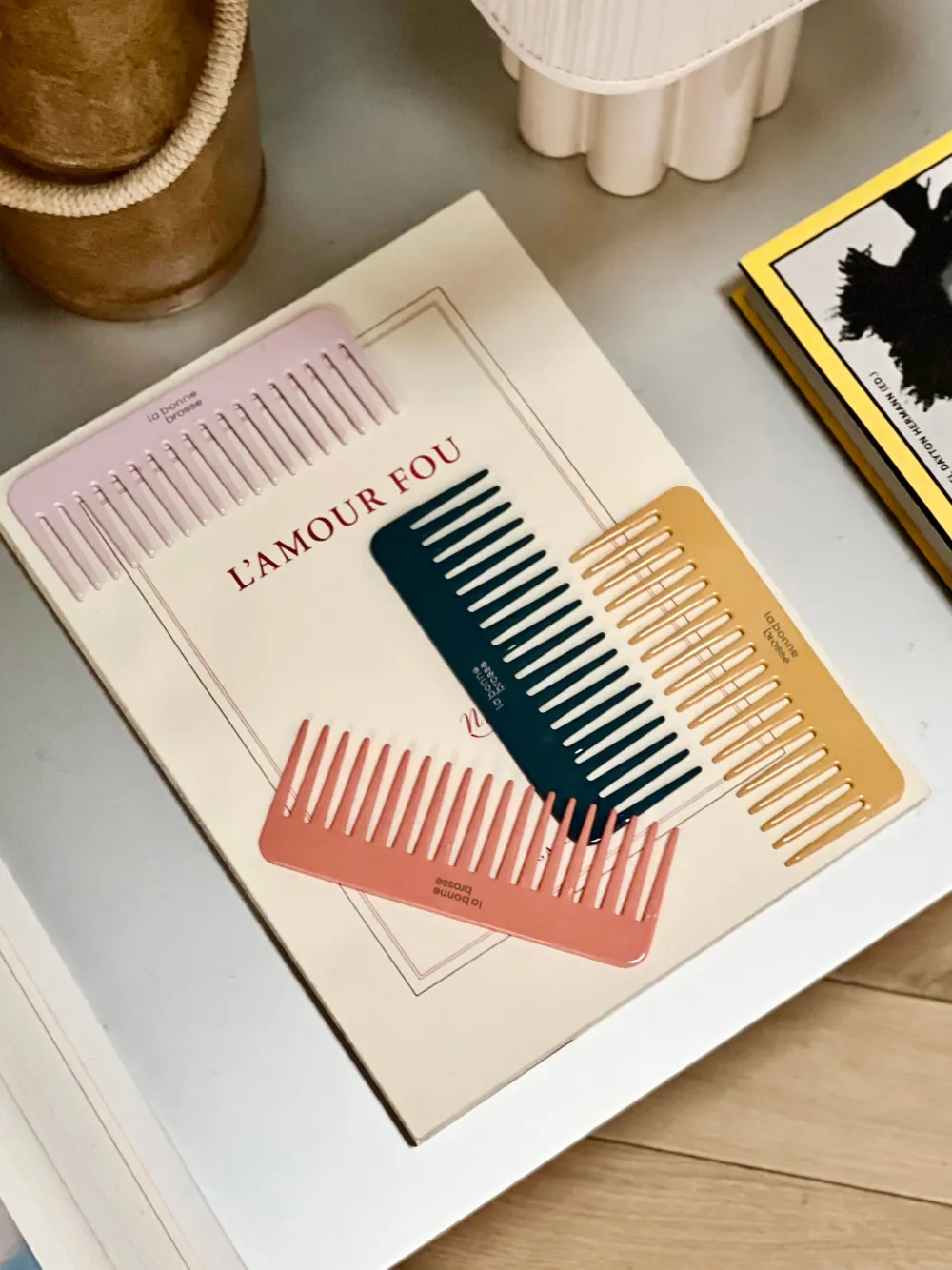 Ce peigne à dents larges convient a tous les types de cheveux, des plus fins aux plus épais, des plus raides aux plus bouclés.