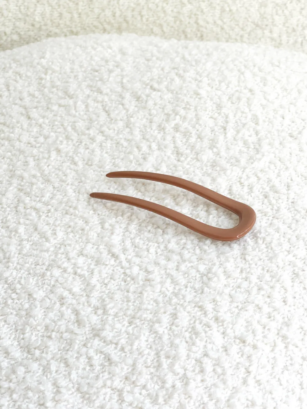 Nos pics à chignon en acétate de cellulose sont disponibles en trois coloris: Terre Battue, Jaune Safran et Terracotta. Ils s’accordent ainsi à tous les styles !