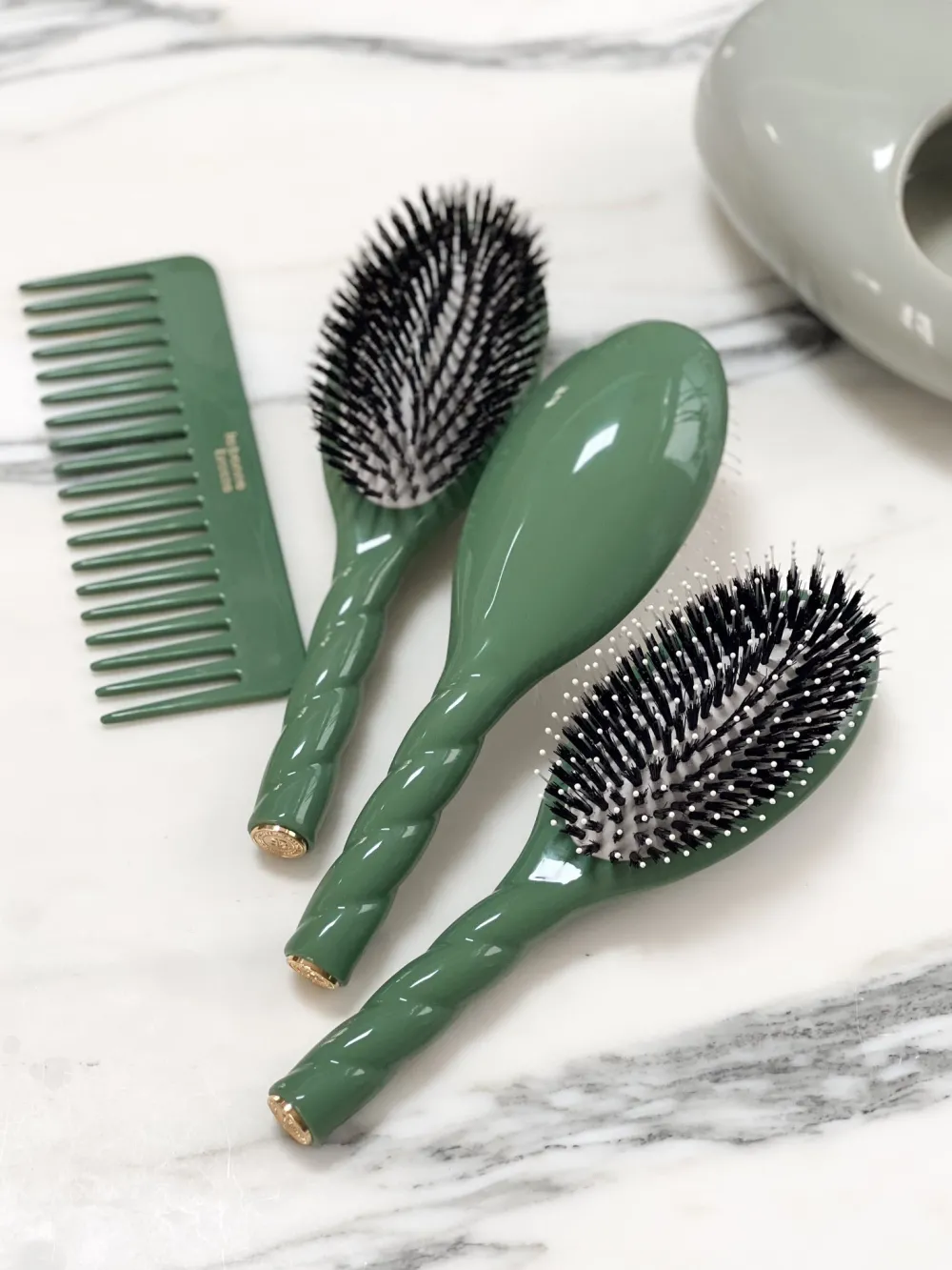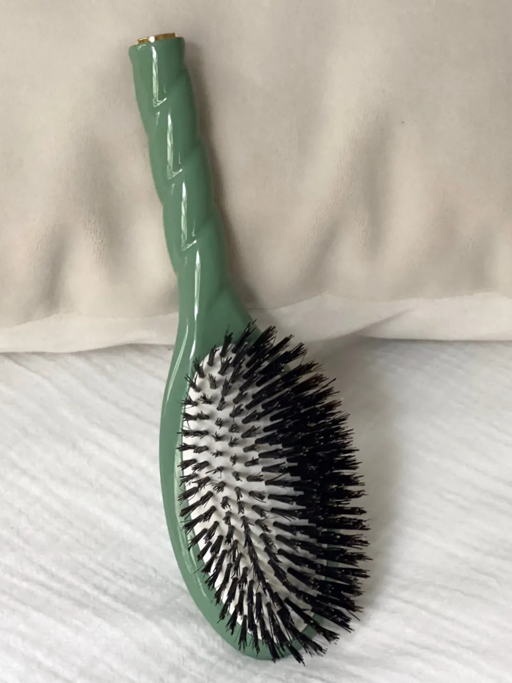 Utilisation de la Brosse à Cheveux en Poils de Sanglier Universelle vert amande
